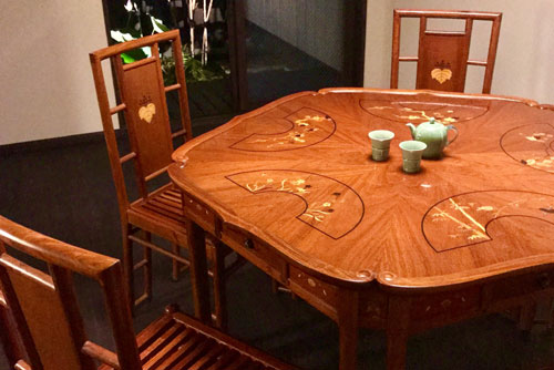 Antique dining table with a pentagon shape and inlay works