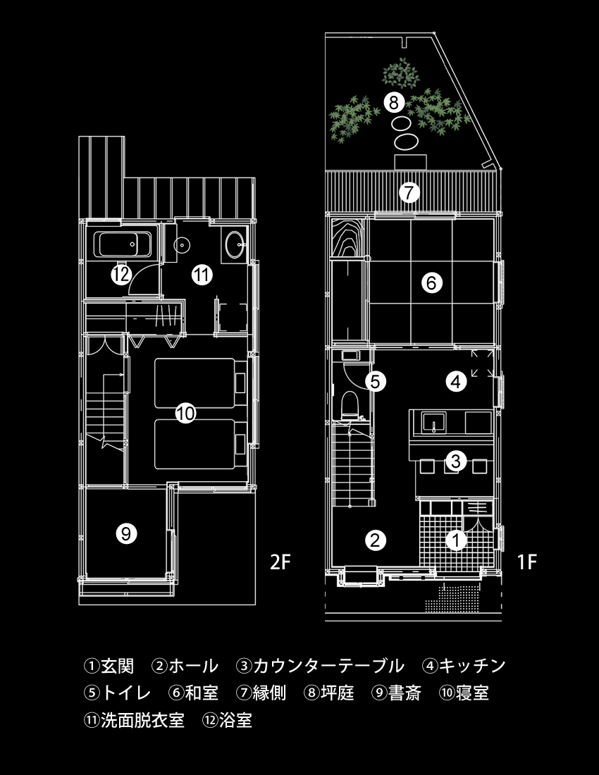 在屋內中或坐著時不經一心望著坪庭,透過雪見障子把方格完美地組成與可拉上的設計,來改變觀看設計而成的明障子。