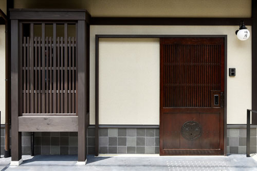 日本格子窗依職業、建築時期、與地域是有所差異的。映月的格子窗是呉服屋格子窗。