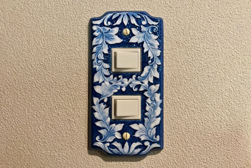 擁有立體感的唐草文様映照蒼藍色有田焼瓷器插座蓋板。