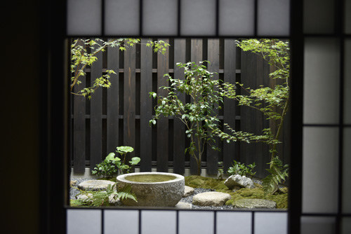 雪見障子把坪庭完美地切割出如透視般的景色。